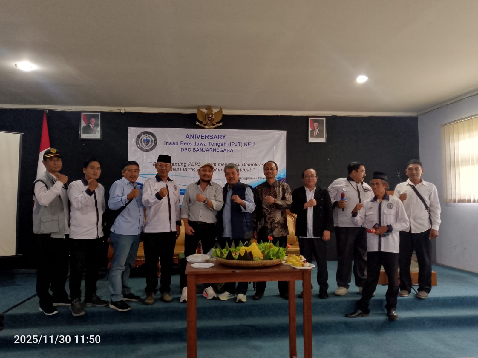 BANJARNEGARA, LINTASINDO — Peringatan Anniversary ke-3 Insan Pers Jawa Tengah (IPJT) DPC Banjarnegara yang digelar di Politeknik Banjarnegara pada Sabtu, 30 November 2025, menjadi momentum konsolidasi peran pers dan edukasi publik di tengah tantangan disinformasi. Acara dimulai pukul 10.30 WIB dan berlangsung hangat dengan partisipasi aktif ratusan peserta dari berbagai kalangan.